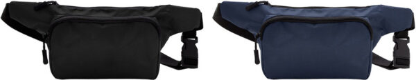 Banano con 2 compartimentos con cierre. Amplio bolsillo frontal. Correa ajustable con herrajes plásticos. Cierres y tiradores de cierre plásticos de color negro.