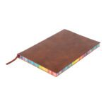 Libreta espiralada. Tapa recubierta en papel kraft de 120 g. Interior de 70 hojas blancas rayadas de 80 g. Cierre con banda elástica y espiral del mismo color.