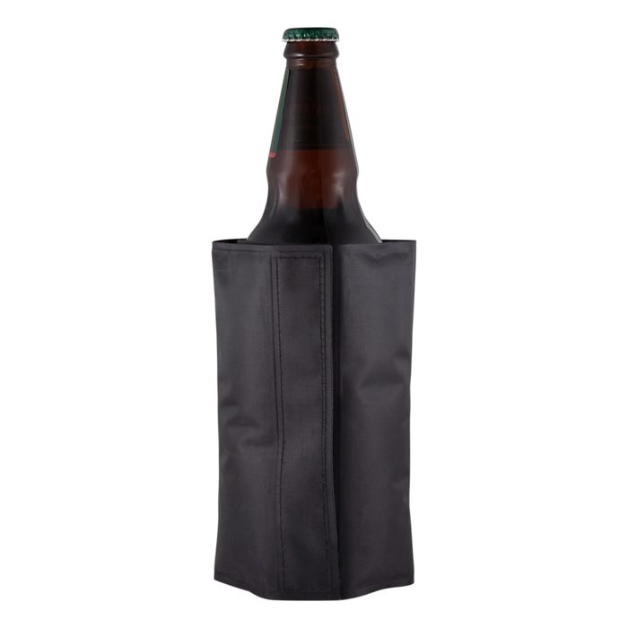 35 x 17,5 x 0,5 cm. Poliéster + PVC + gel enfriante. Peso 270 g. Cooler/enfriador de Botellas. Interior con relleno de gel. Cierre de velcro.
