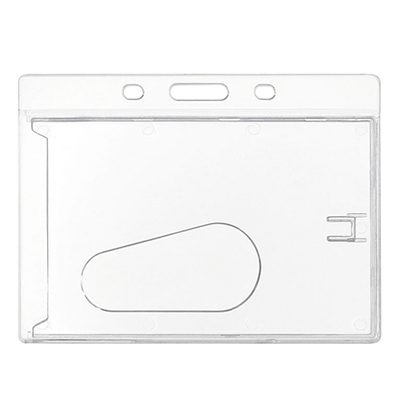 Porta-Credencial de Acrílico transparente, para Credenciales tamaño Tarjeta de Crédito. Presentación horizontal.