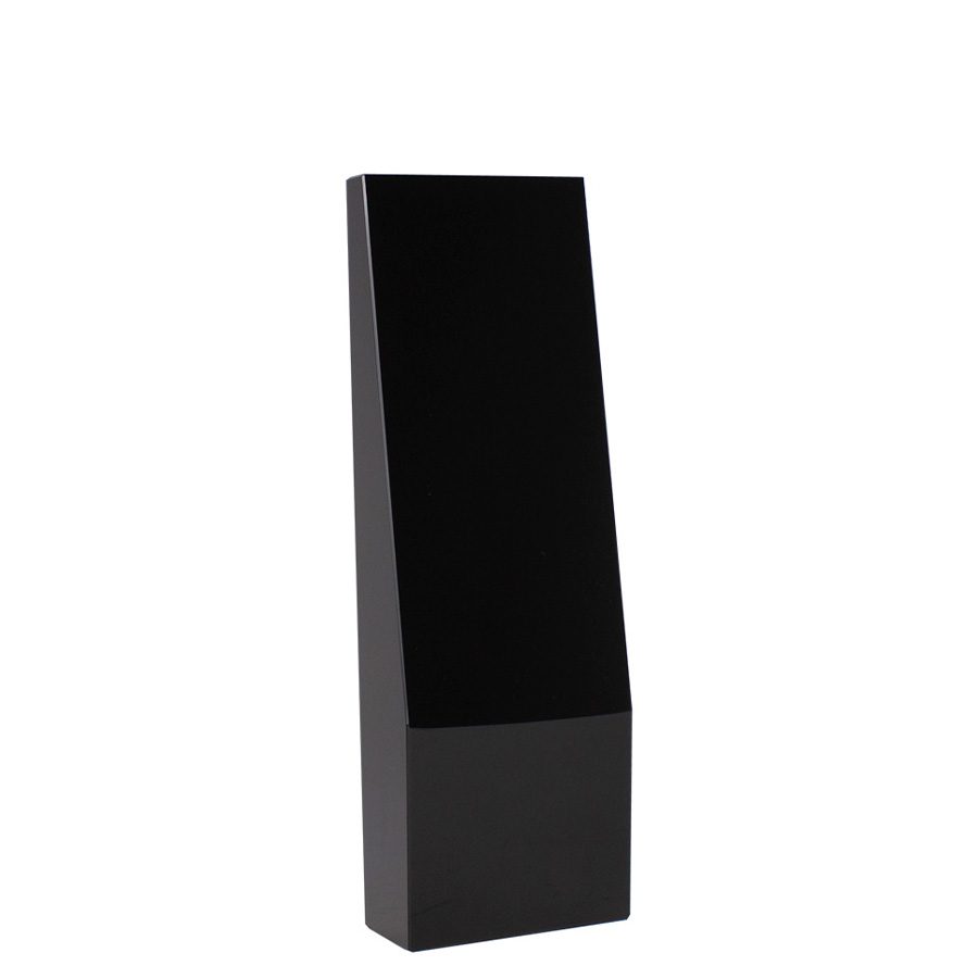 Elegante Trofeo de Cristal Negro, modelo «Azabache». Presentación en caja de cartón forrado negro con cierre imantado, interior acolchado de espuma y tela poliéster satinado negro, con troquel.