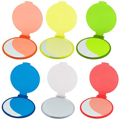 Espejo redondo de bolsillo. Material plástico frozen con tapa.