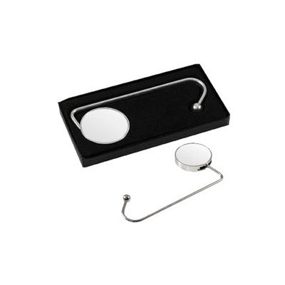 Colgador Metálico de sobremesa para Bolsos y Carteras. Presentación en estuche laminado negro con cuna aterciopelada.