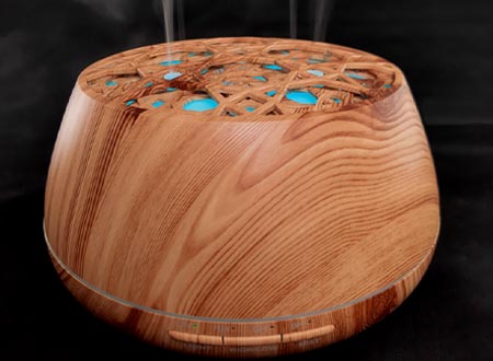 Difusor de Aroma con proyección de luz y parlantes. Contiene conexión Bluetooth para escuchar música desde el celular. También contiene APP para controlar colores e intensidad de aroma. Amplio contenido interno para líquido (hasta 300ml), diseño de proyección y colores variados de iluminación, atractivo formato en simil madera natural vetada. Un producto para disfrutar y relajarse, que no puede faltar en tu hogar u oficina.