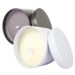 Vela aromática de 8oz en envase redondo de vidrio empavonado con tapa de Bamboo. Aroma a Vainilla. Ideal para regalo de hogar y aromaterapia. Amplia superficie de impresión de logo.