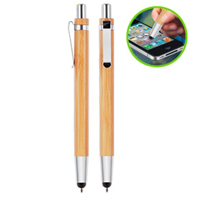 Bolígrafo de Madera de Bambú, con clip metálico y Puntero Touch-Screen. Escritura azul.