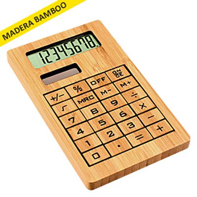 Calculadora 100% de madera de Bamboo. Visor solar 8 dígitos.