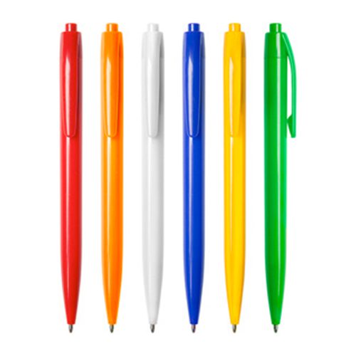 Plástico. Lápiz pasta con cuerpo plástico de color con pulsador. Pasta azul.