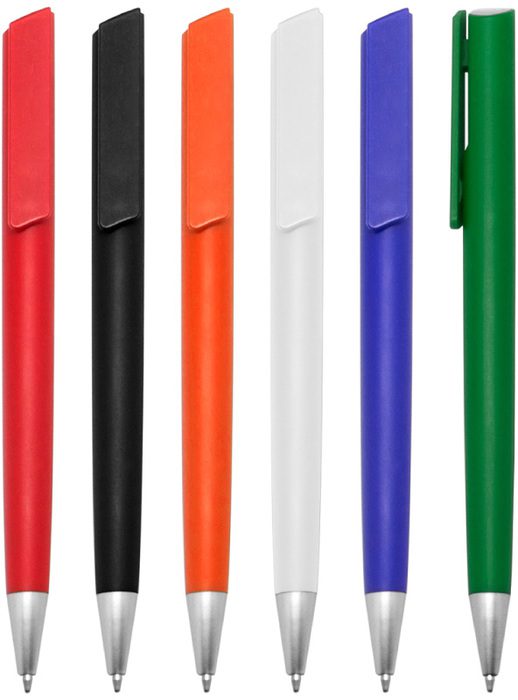 Plástico. Cuerpo color. Clip pulsador y puntera color plata. Tinta negra