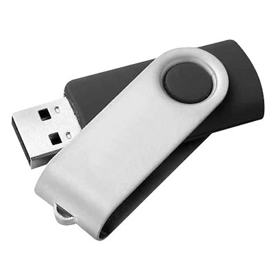 USB Pendrive con carcasa metálica de giro, de 8 GB de capacidad. Presentación en caja de PVC traslúcido.
