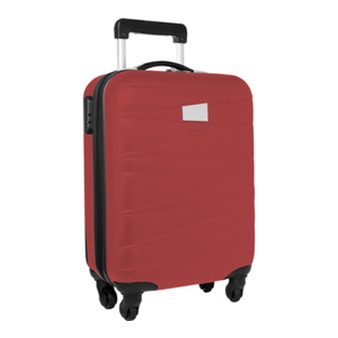 55 x 35 x 20 cm. Capacidad 38 litros. ABS. 4 ruedas con giro 360°. Manilla de transporte reforzada. Mango extensible hasta 54 cm. 2 posiciones. Interior: 2 compartimentos principales con cierre y elásticos ajustables. Placa metálica desmontable para grabado (medida: 6 x 4 cm.) Candado incluido con combinación.