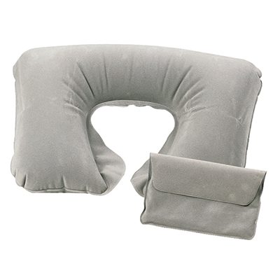 Almohada inflable cervical en tela aterciopelada, incluye funda en el mismo color y material. Ideal para viajes.