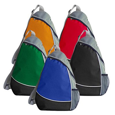 Mochila cruzada modelo “Manchester” en tela raquelada polyester 600D con aplicación TNT gris.