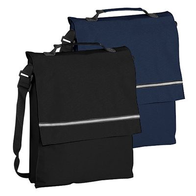 Maletín de tela raquelada Polyester 600D modelo “Milan”, con solapa y bolsillo interior. Incluye banda reflectante.