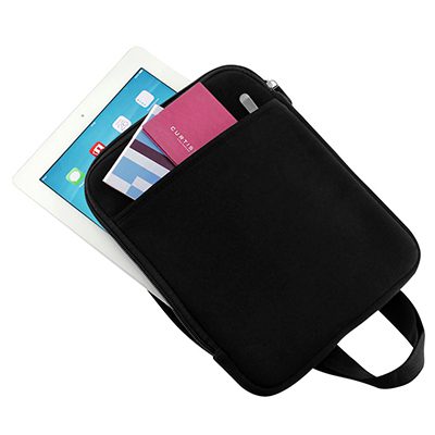 Mini Bolso Porta-Tablet (iPad) de Neopreno 3 mm con bolsillo delantero.