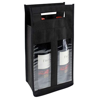 Bolsa Ecológica para 2 botellas de vino, con ventanas de PVC clear, 100% reciclable y reutilizable, con mangos.