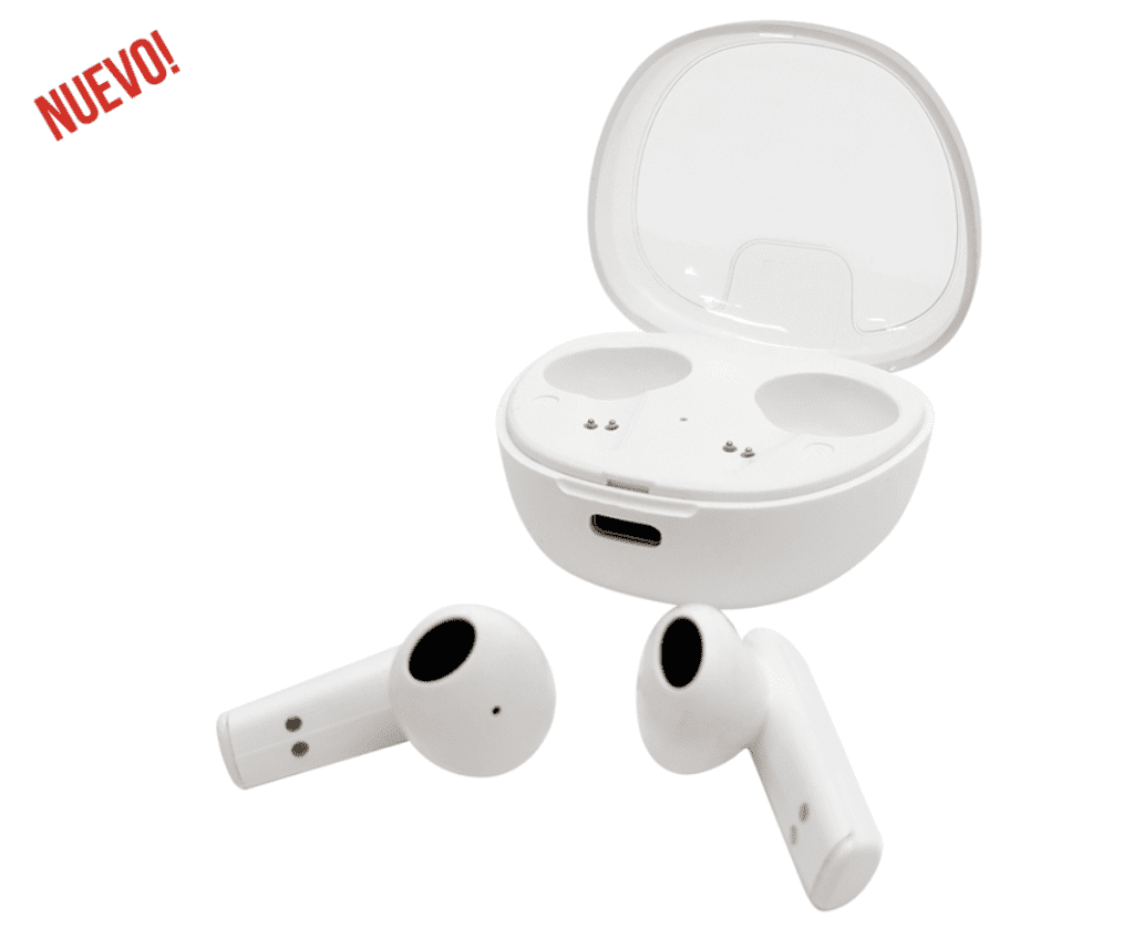 5,5 cm x 5 cm x 2,5 cm. (medida de la caja) 3 cm (auriculares). Plástico ABS. Auriculares bluetooth con imán, se conectan al celular de forma inalámbrica. Función táctil de encendido, apagado, avance, retroceso y pausa. También permite responder, rechazar o finalizar una llamada. Estuche con indicador luminoso que permite cargar la batería de los audifonos. Capacidad de carga: 200 mAh. Capacidad de batería de litio por auricular: 30 mAh. Bluetooth V5.0. Rango de alcance: 10 metros. Tiempo de reproduccion autónomo: 3h aprox. Tiempo de carga de la batería: 2h. Cable de carga USB tipo C. Presentación en caja de regalo.