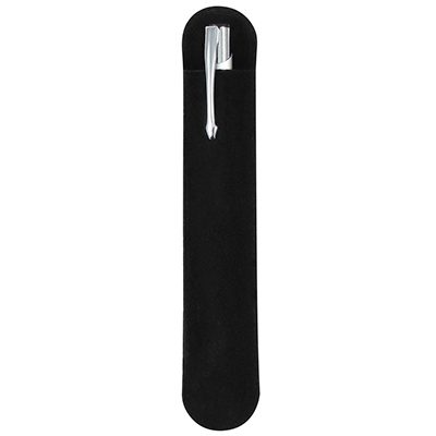 Funda de Pana (aterciopelada) negra, para 1 bolígrafo. Puntas redondeadas. Superficie ajustada para bolígrafos gruesos. No incluye Bolígrafo.