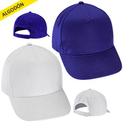 Jockey 5 paneles, 100% Algodón. Panel frontal liso, ideal para impresión. Cierre posterior velcro.