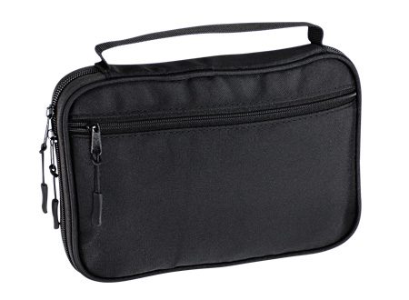 Bolso Porta-Accesorios de Viaje, en tela Polyester 840D. Gran cantidad de bolsillos y compartimentos para accesorios, bolígrafos, tarjetas de memoria, etc. Con gancho de tela para colgar. Un bolso práctico y pequeño, ideal para llevar dentro de tu equipaje de mano.