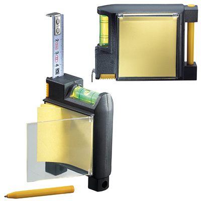 Huincha de medir (metálica-rígida) de 3 mts multifunción. Incluye lápiz pasta, post-it, nivel y abrasadera para bolsillo o cinturón.