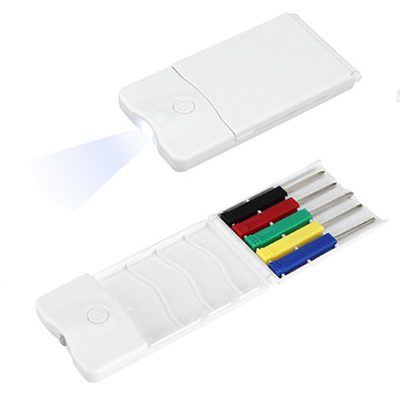 Set de 5 mini-destornilladores de precisión, con linterna LED.