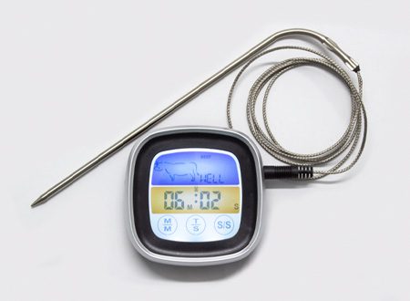 Termómetro Digital para Carne con timer y funciones en °C o °F. Resistente al calor hasta 250°C (482°F)
