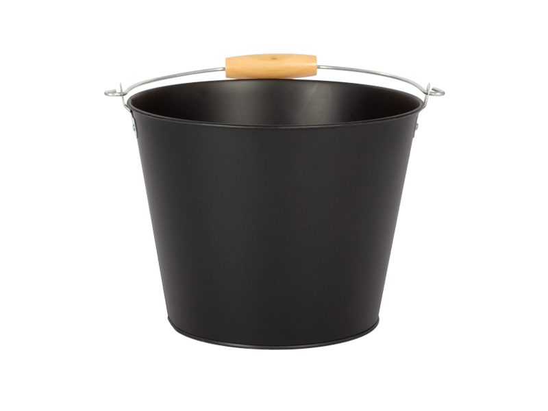Balde-Hielera de 5.4 litros de capacidad, fabricado en Acero Galvanizado de 0.28mm de espesor, pintado color negro. Con asa metálica y mango de madera de pino. No incluye tapa.