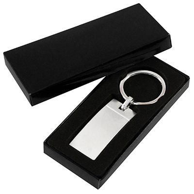 Llavero Metálico satinado, modelo “Wave”. Presentación en estuche laminado negro con cuna aterciopelada.