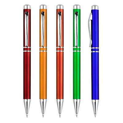 Bolígrafo plástico “Prime” con cuerpo de color metalizado. Escritura azul.