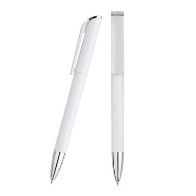 Bolígrafo blanco “Angel”, con clip ancho plano, especial para imprimir sobre él. Escritura azul.