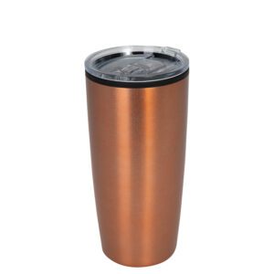 Termo metálico encobrizado de 1/2 litro, tapa con dosificador. Presentación en estuche de cartón laminado negro.