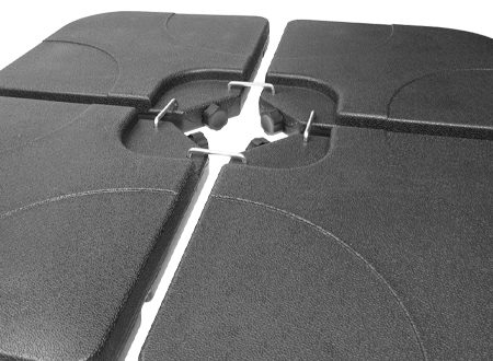 Set de 4 bases plásticas cuadradas rellenables (con agua, arena o piedrecilla, para darle mayor peso), con una capacidad total de 60kg o 60L.
