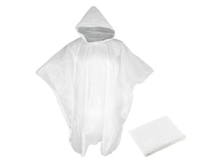 EMERGENCY PONCHO – Capa de Agua con capucha, en Polietileno de 0,03mm de espesor. Presentación en bolsa de polipropileno transparente con cierre tipo Ziploc.