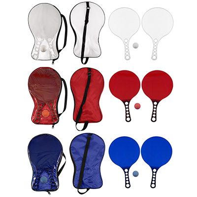 Set de Paletas de Playa de Acrílico de color Traslúcido, incluye estuche de PVC y pelotita de goma.