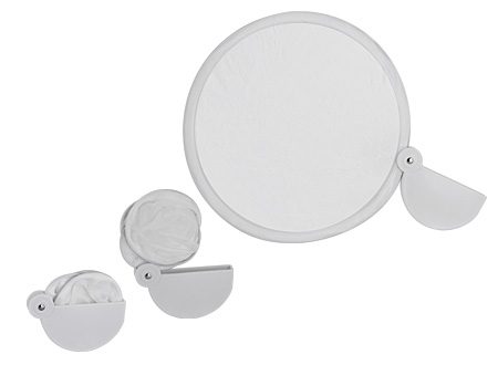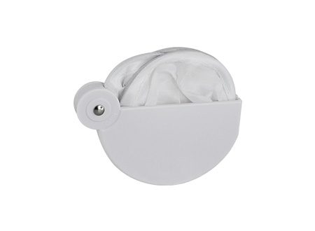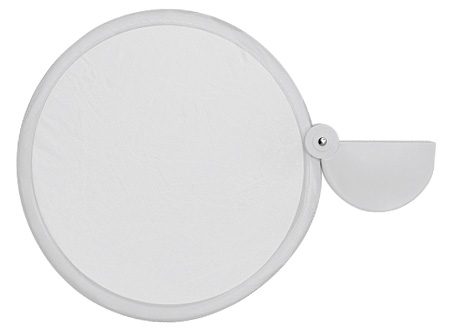 Abanico plegable de poliéster. Se guarda plegado en base semi-circular de plástico ABS. Simple, económico y fácil de imprimir o sublimar, ideal para promociones de verano.