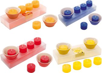 21,8 x 7,5 x 3,5 cm Set de 6 velas perfumadas y 2 portavelas.