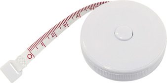Ø 5 cm. huincha métrica de 1,5 m. Plástico. con botón de bloqueo que permite marcar medida y liberar cinta. Escala de medida en cm y pulgadas.