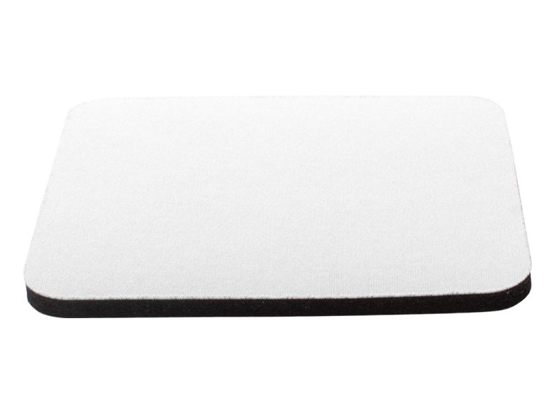Posavaso cuadrado de 10x10cm. y 5mm de espesor, esquinas redondeadas, con base de silicona negra y cubierta de tela poliéster blanco para Sublimación.