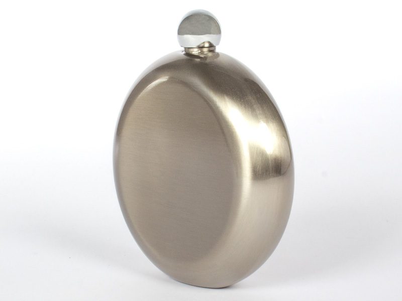 Licorera (Petaca) redonda de Acero Inoxidable con tapa redonda, para Sublimación. Capacidad 300cc (10oz). Presentación en bolsa PP translúcida + estuche de cartulina blanca.