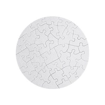 Puzzle Rompecabezas circular de 41 piezas, en cartón sandwich 1.2mm con cobertura aterciopelada para Sublimación. Presentación en bolsa de Polipropileno transparente.